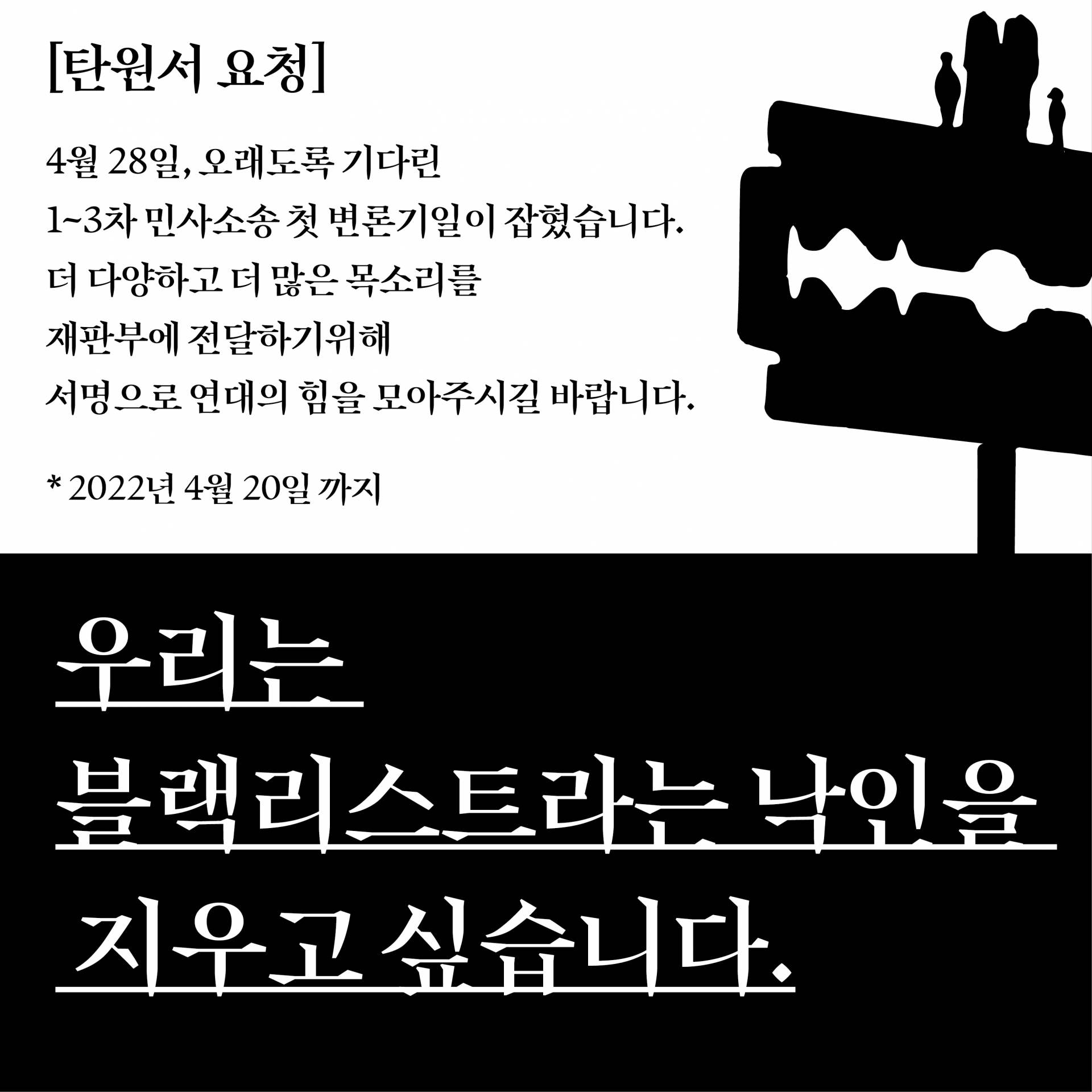 활동홍보_탄원서 연명 요청 문화예술계 블랙리스트 민사소송의 올바른 판결을 요청한다