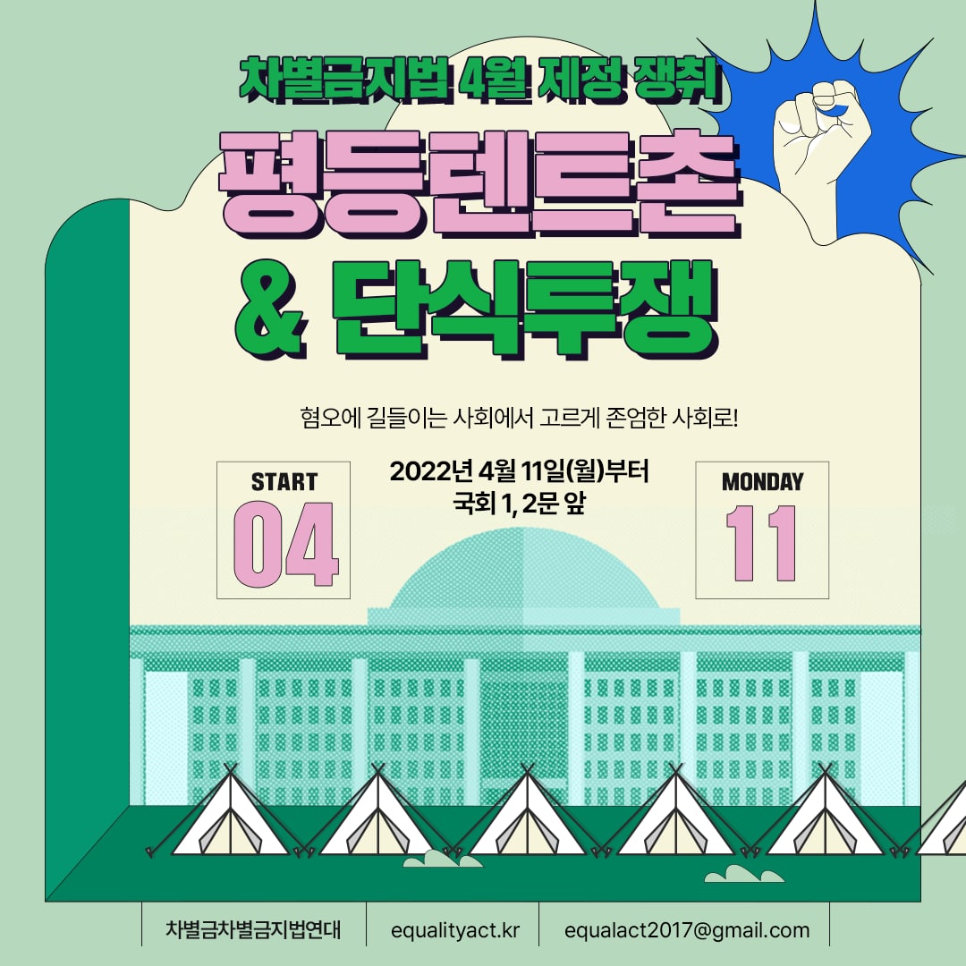 연대홍보 차별금지법 4월 제정 쟁취 평등텐트촌 & 단식투쟁