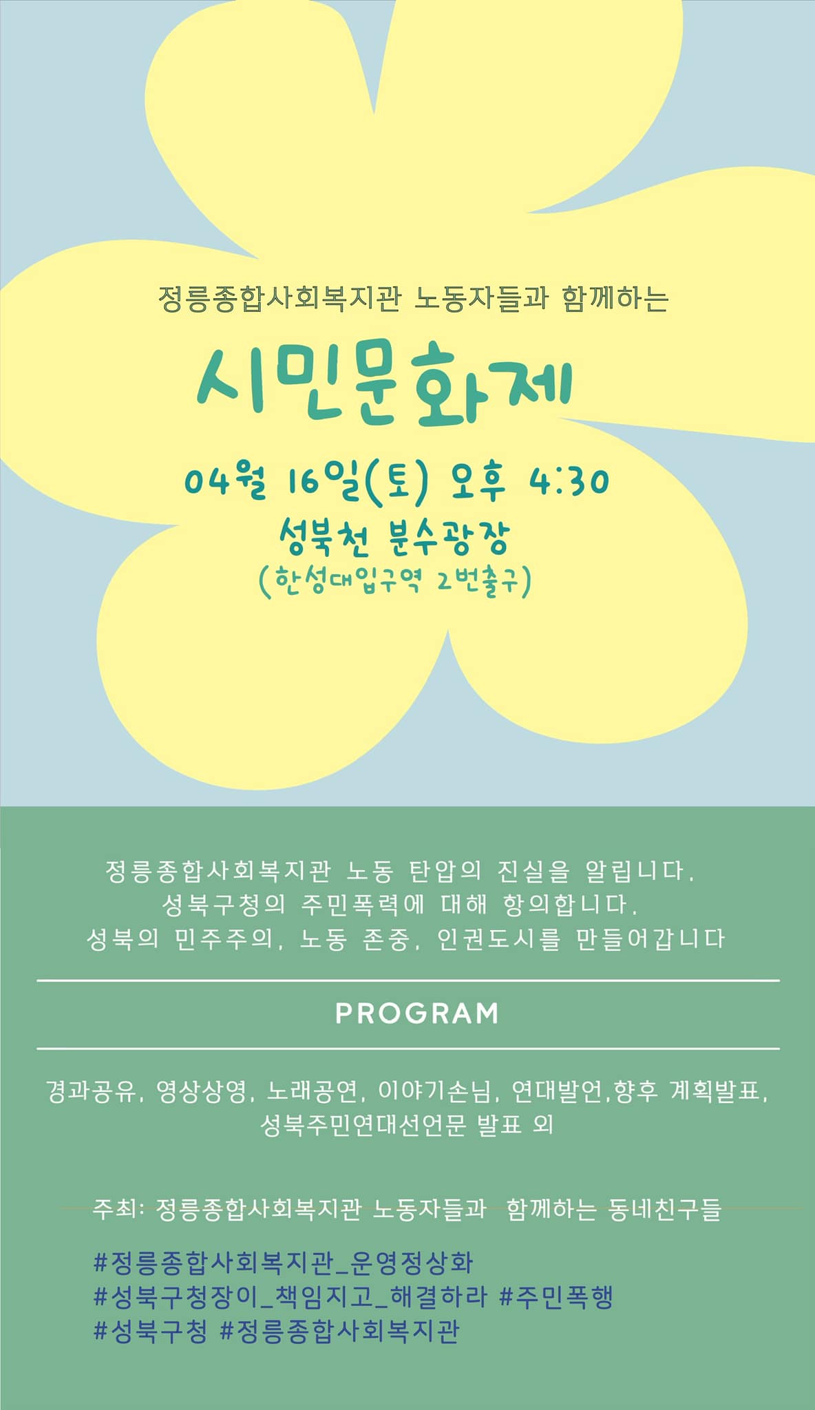 연대홍보 정릉종합사회복지관 노동자들과 함께 살기좋은 성북 만들기