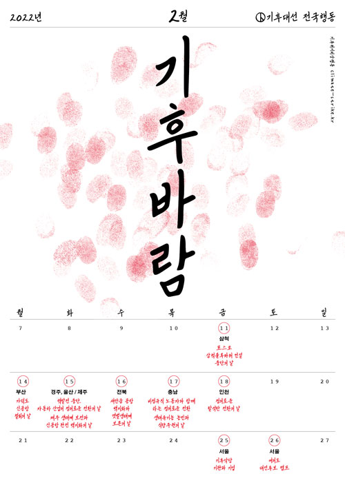 활동홍보 기후위기비상행동 기후대선 전국행동 ‘기후바람’ 2022. 2. 11. ~ 2. 26.