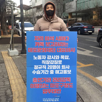 활동후기 · 연대홍보 마포문화재단 운영 정상화를 위한, 마포문화재단 송제용 대표이사의 직장 갑질과 독단적인 재단 운영을 규탄한다!