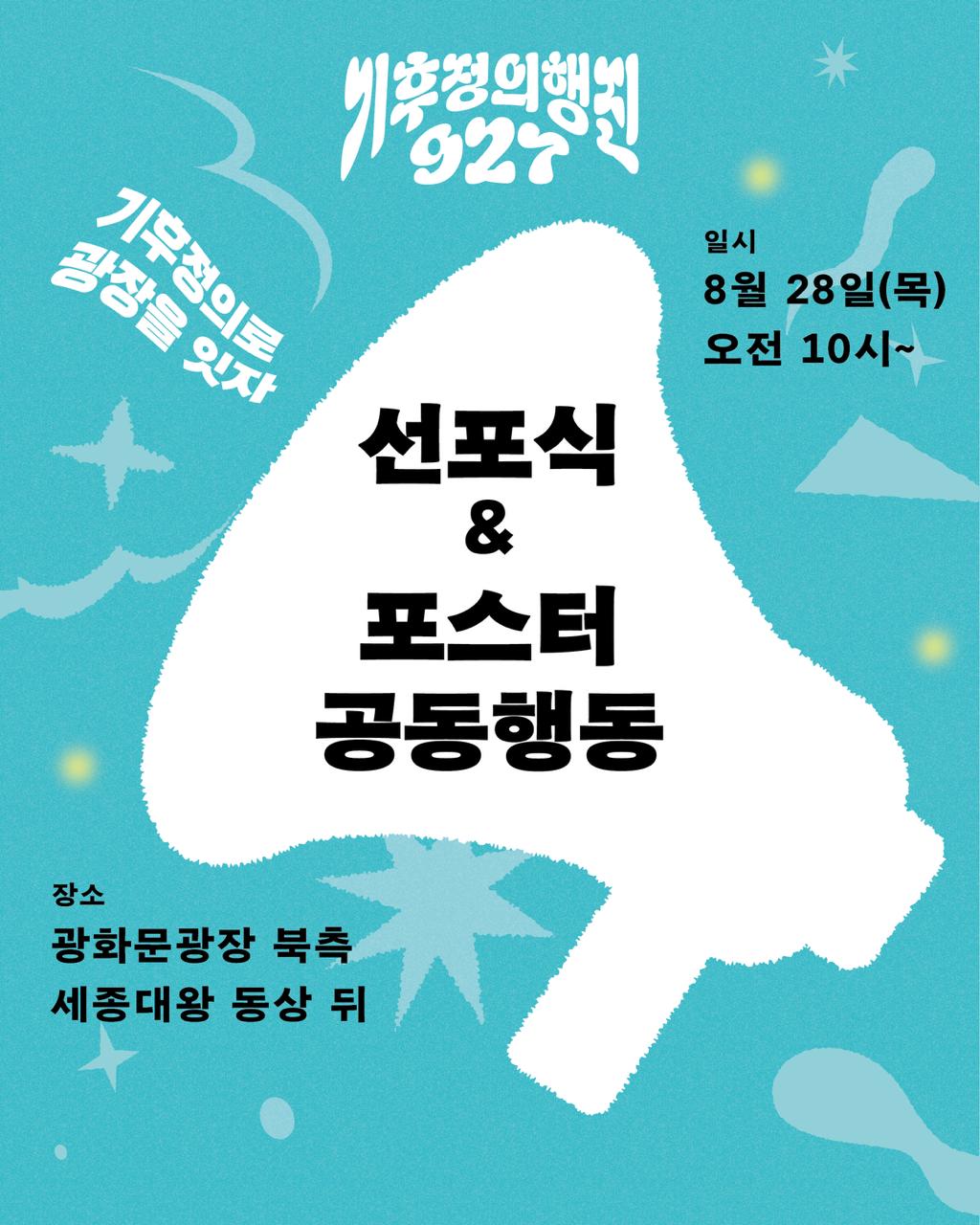 927 ๊ธฐํ์ ์ํ์ง๊ณผ ์ฐ๋ฆฌ์ ์๊ตฌ๋ฅผ ์๋ฏผ๋ค์๊ฒ ์๋ฆฌ๊ธฐ ์ํด ์ ํฌ ๊ธฐ์ํ๊ฒฌ๊ณผ ํฌ์คํฐ ํ๋์ ์๋์ ๊ฐ์ด ์งํํ ์์ ์ด๋ ๊ด์ฌ๊ณผ ์ฐธ์ฌ ๋ฐ๋๋๋ค.