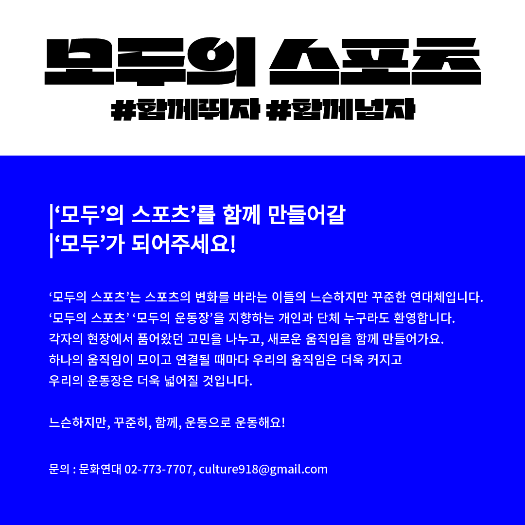 ‘모두의 스포츠’를 함께 만들어갈 ‘모두’가 되어주세요!