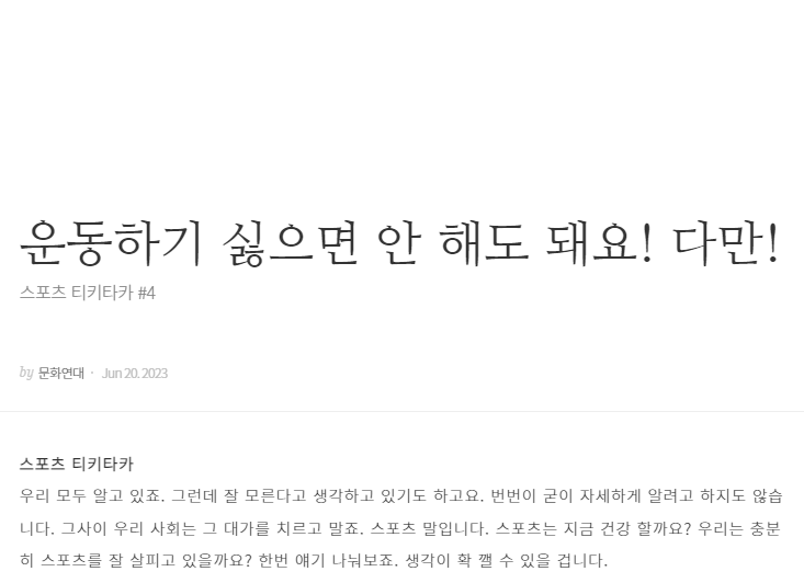 기획연재_스포츠 티키타카 #4 운동하기 싫으면 안 해도 돼요! 다만!