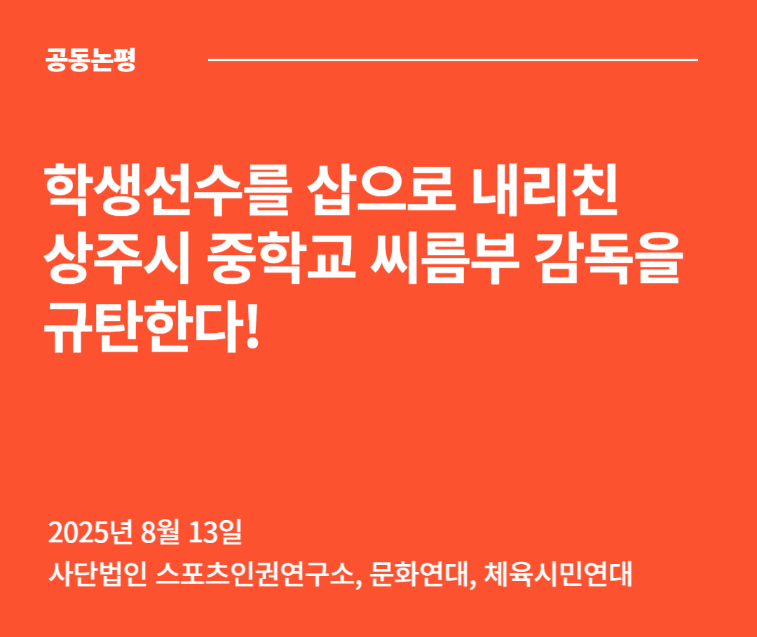 ๋ ํ๊ต์ด๋๋ถ ์ง๋์์ ์ํ ์คํฌ์ธ ์ธ๊ถ์นจํด ์ฌ๊ฑด์ด ๋ฐ์ํ๋ค. ์ง๋ 6์ ์์ฃผ์ ๋ชจ ์คํ๊ต ์จ๋ฆ๋ถ ๊ฐ๋ ์ด ์ ์ A๊ตฐ์ ๋จธ๋ฆฌ๋ฅผ ์ฝ ๋ ๋ก ๋ด๋ ค์ณ ํผ๋ถ๊ฐ ์ฐข์ด์ง๋ ์ํด๋ฅผ ์ ์๊ณ ๋ณธ ์ฌ๊ฑด์ด ๋ ๋ฌ ๋์ ์ํ๋์๋ค๋ ์ฌ์ค์ด ์ด์ ์ผ ์๋ ค์ง ๊ฒ์ด๋ค. ํนํ ์ด ์ฌ๊ฑด์ ์ดํ์๋ ์ง์์ ์ธ ํญ๋ ฅ์ ์๋ฌ๋ ค์จ A๊ตฐ์ด ์์ ์ ๋ชฉ์จ์ ๋์ผ๋ ค๊ณ ํ ๊ฒ์ ์๋ฒ์ง๊ฐ ๊ทน์ ์ผ๋ก ๋ฐ๊ฒฌํด ๊ตฌ์กฐํ๋ฉด์ ๋๋ฌ๋๊ฒ ๋์๋ค.