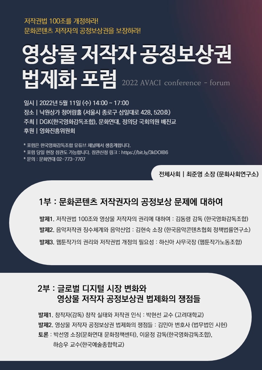 *포럼은 한국영화감독조합 유튜브 채널에서 생중계됩니다.