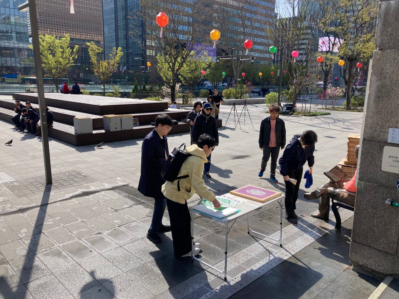 기자회견에 앞서 오전 8시부터 캠페인 로고 실크스크린을 인쇄하는 사전 행사를 진행하였습니다. 시민들은 자신들이 가진 면소재 장바구니나 티셔츠, 손수건에 캠페인에 참여하였습니다.