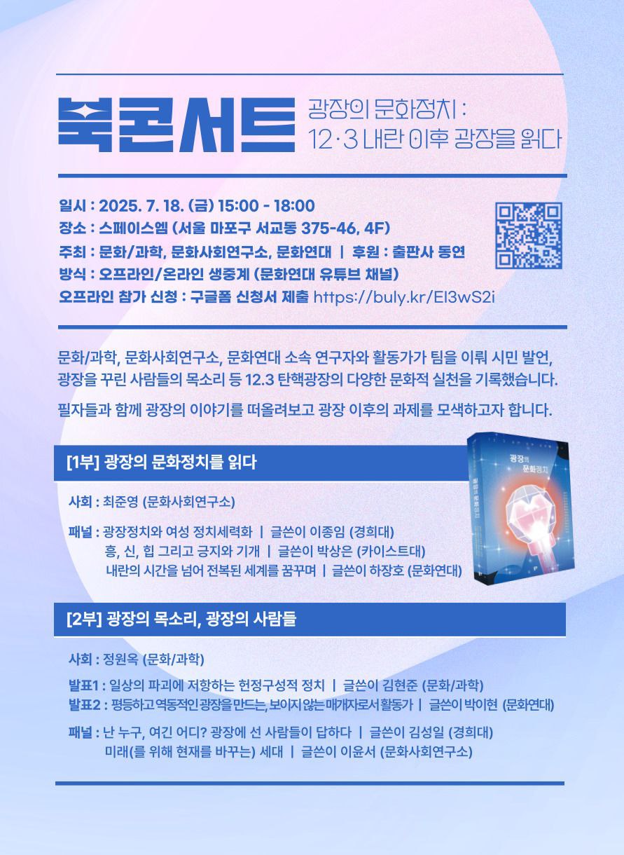 <광장의 문화정치 : 12.3 내란 이후 광장을 읽다> 북콘서트 참가신청