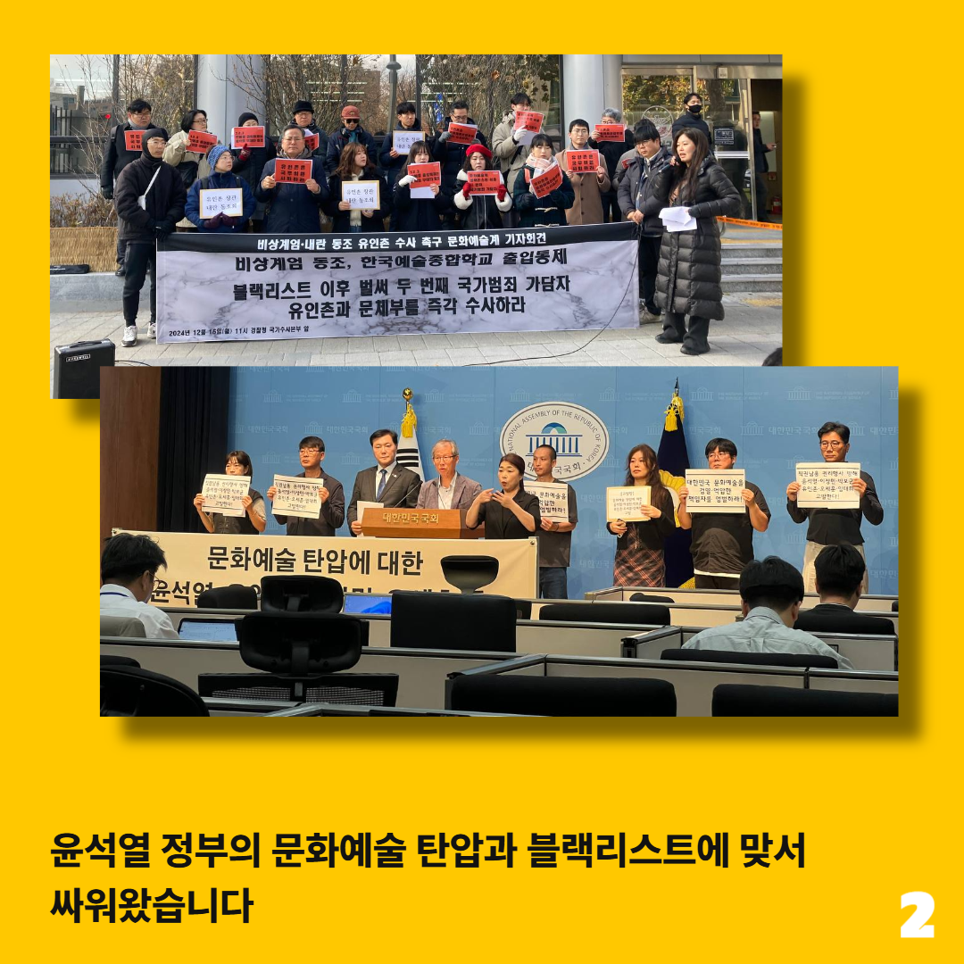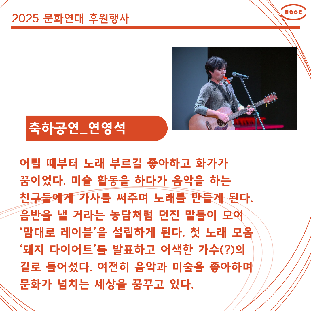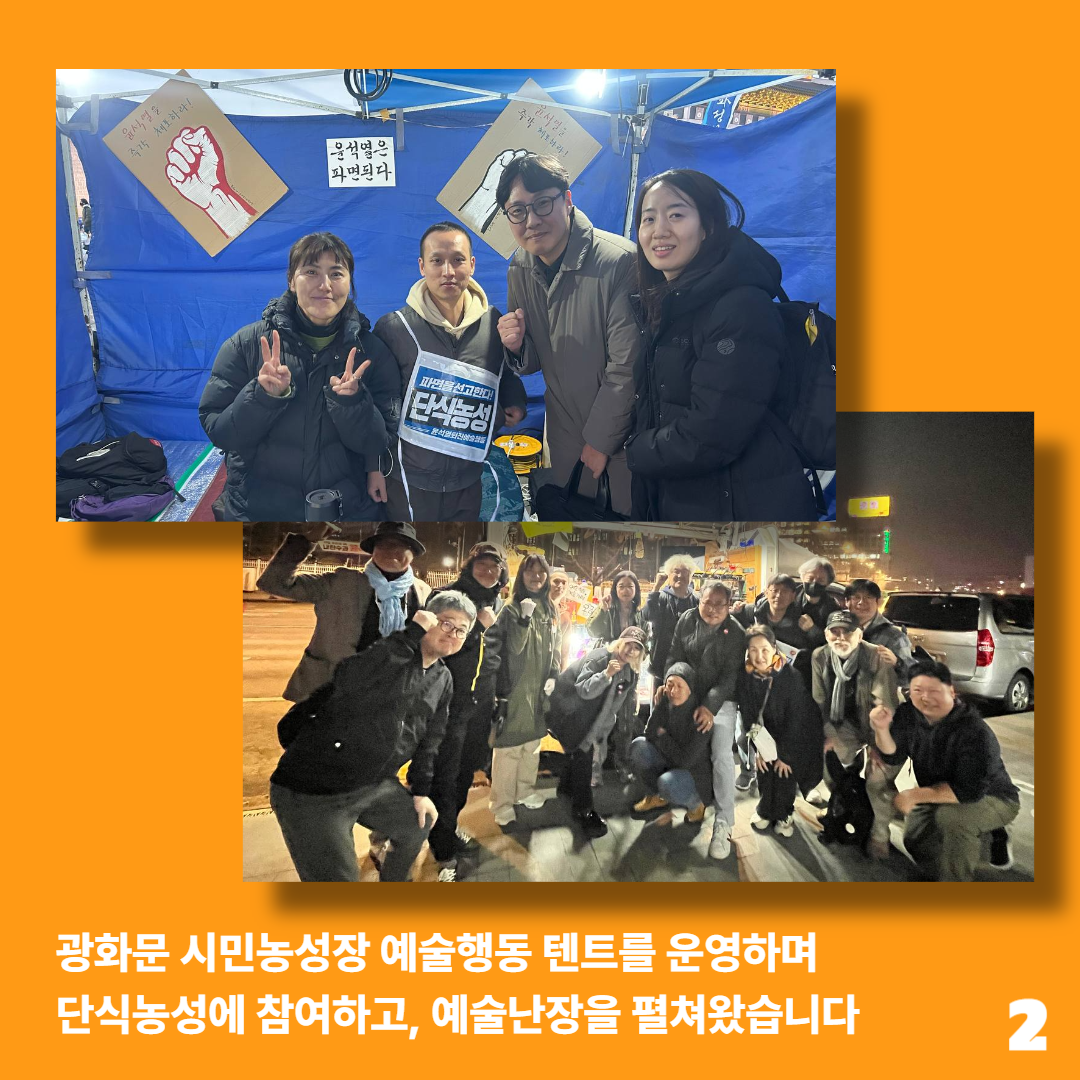 - 작년, 후원행사 전날 비상계엄이 선포되어 문화예술인과 시민들과 함께 윤석열 퇴진 문화운동에 힘을 모으느라 행사를 열지 못했습니다.