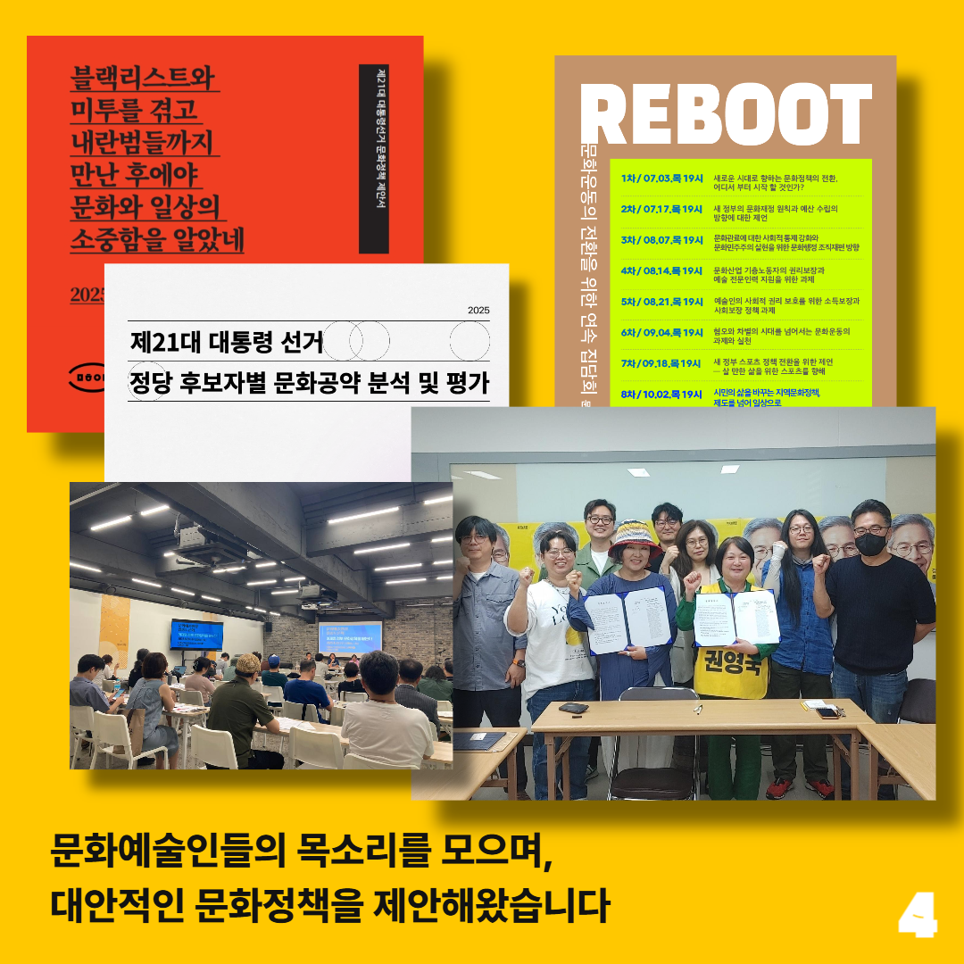 ▶ 예술인의 노동주권과 복지권리 구현하는 활동