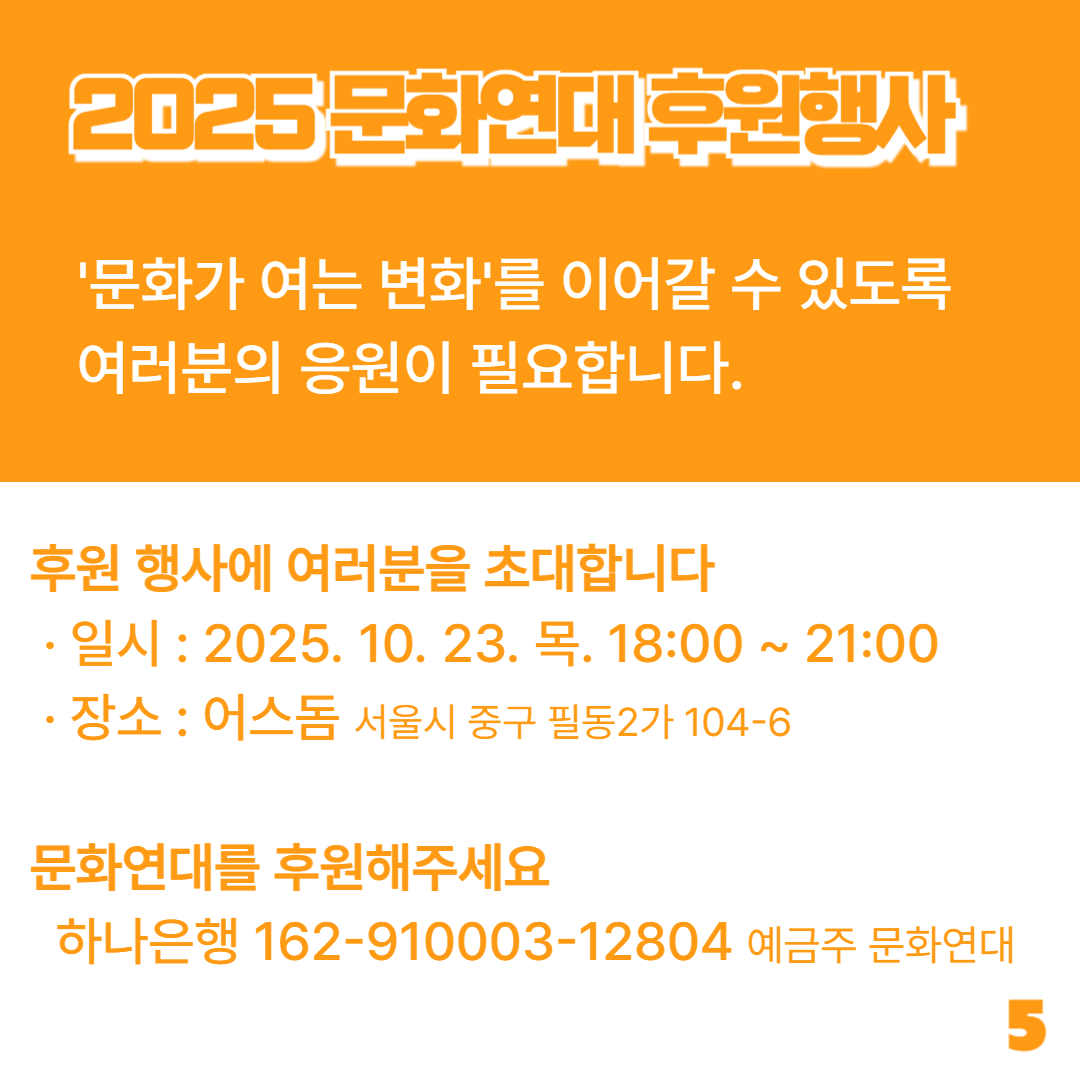 2025 문화연대 후원행사에 여러분을 초대합니다!