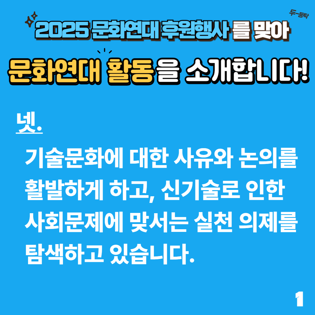 문화가 열어가는 변화를 여러분과 함께 이어갈 수 있도록 많은 응원 부탁드리며, 후원행사에도 꼭 자리해주시길 부탁드립니다. 감사합니다!