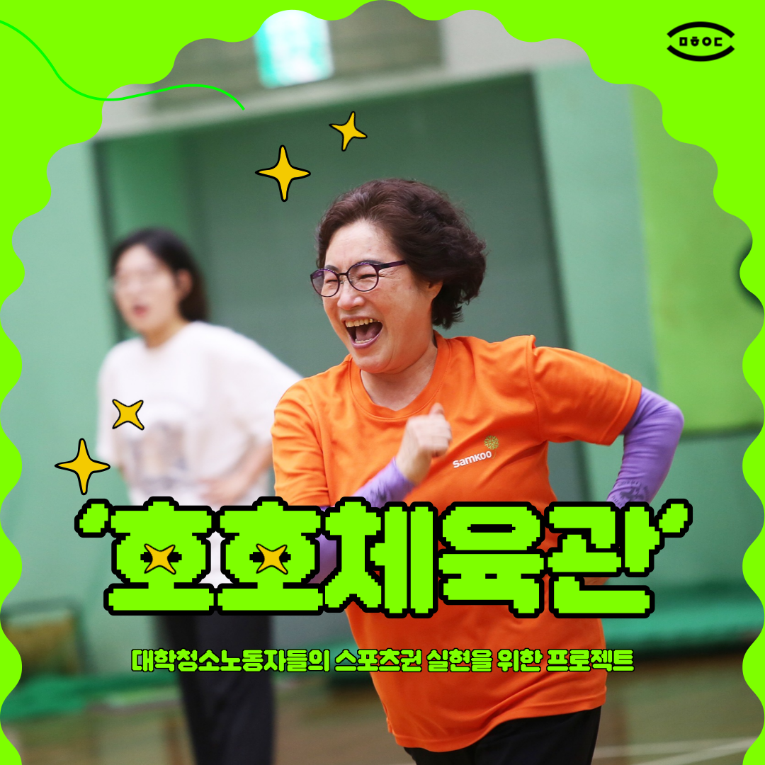 '호호체육관'은 고된 노동에 시달리는 대학청소노동자들이 스포츠를 통해 자기의 몸과 삶에서 즐거움과 놀라움을 찾아가고, 소속 대학 학생 및 시민사회와 서로 연대할 수 있는 발판을 마련하는 프로젝트입니다.
