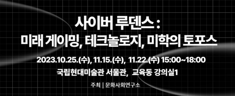 2023년 10월 25일, 11월 15일, 11월 22일, 3회에 걸쳐 기획포럼 <사이버 루덴스>가 국립현대미술관에서 개최되었다.