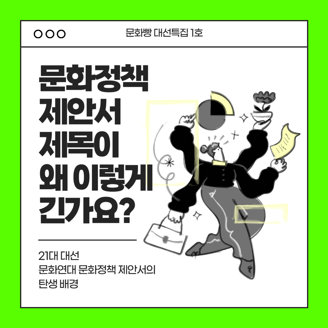 ― 문화연대 21대 대통령선거 문화정책 제안서<블랙리스트와 미투를 겪고 내란범들까지 만난 후에야 문화와 일상의 소중함을 알았네>의 탄생 배경