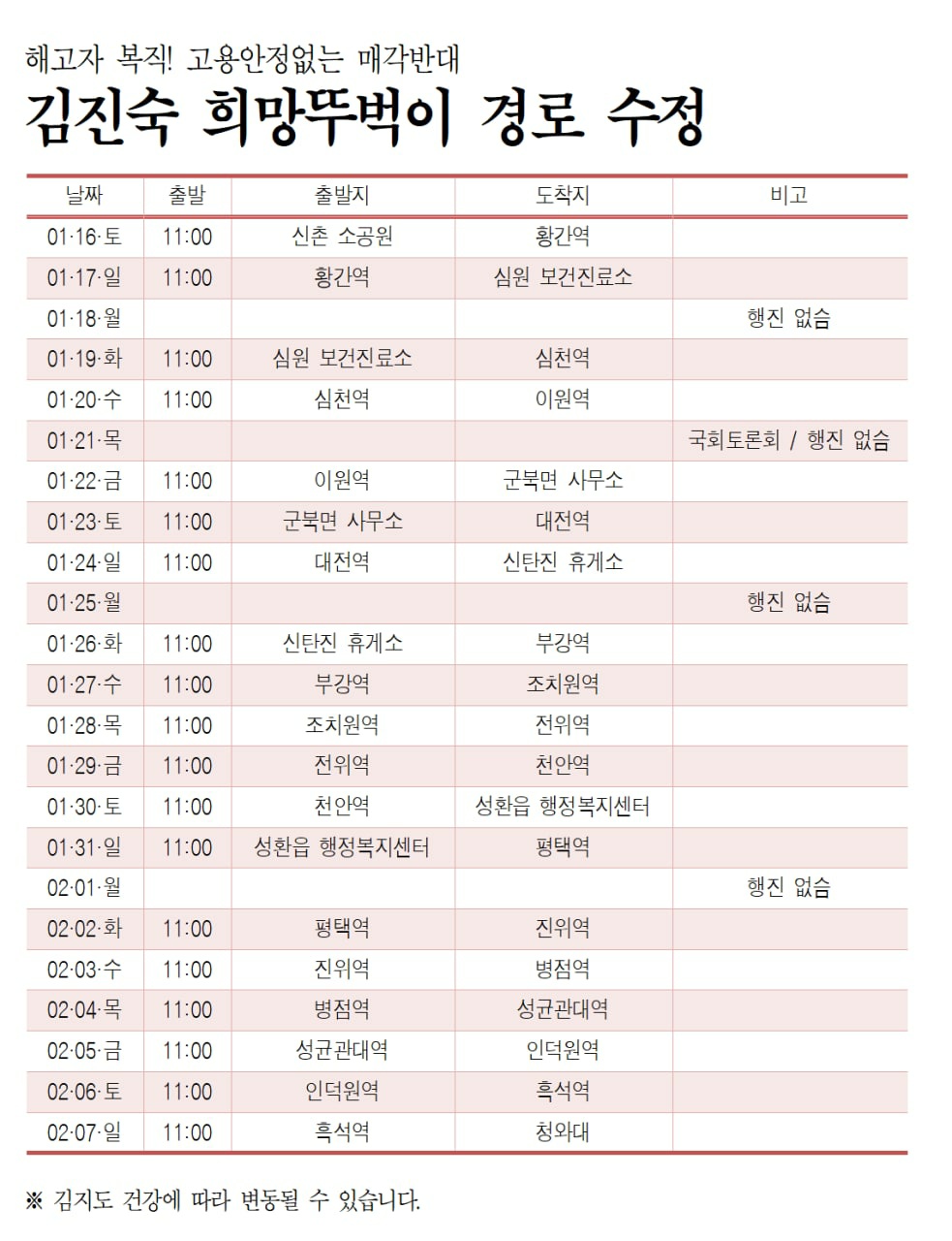 한 사람 한 사람이 김진숙 씨의 행진에 함께 한다면, 그래서 만 명의 행진이 되고, 10만의 행진이 된다면, 그의 복직도, 그가 바라는 해고 없는 세상도 가능하지 않을까요? 김진숙, 그가 명예롭게 복직하고 암 투병에 전념할 수 있도록 마음 모아주시기를 부탁드립니다.