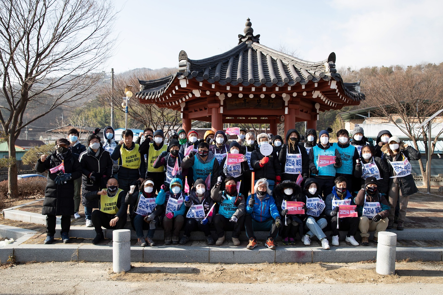 지난 1월 16일, 이른 아침에 차를 몰아서 김천 방향으로 달렸습니다. 기온은 급강하해서 영하 9도, 체감온도는 그보다 더 떨어져 영하 15도 이하의 강추위가 몰아친 날이었지요. 가는 중간 중간에 졸음이 몰려와 잠시 쉬기를 반복하다 보니 행진 출발 직전에야 출발 장소에 도착했습니다.