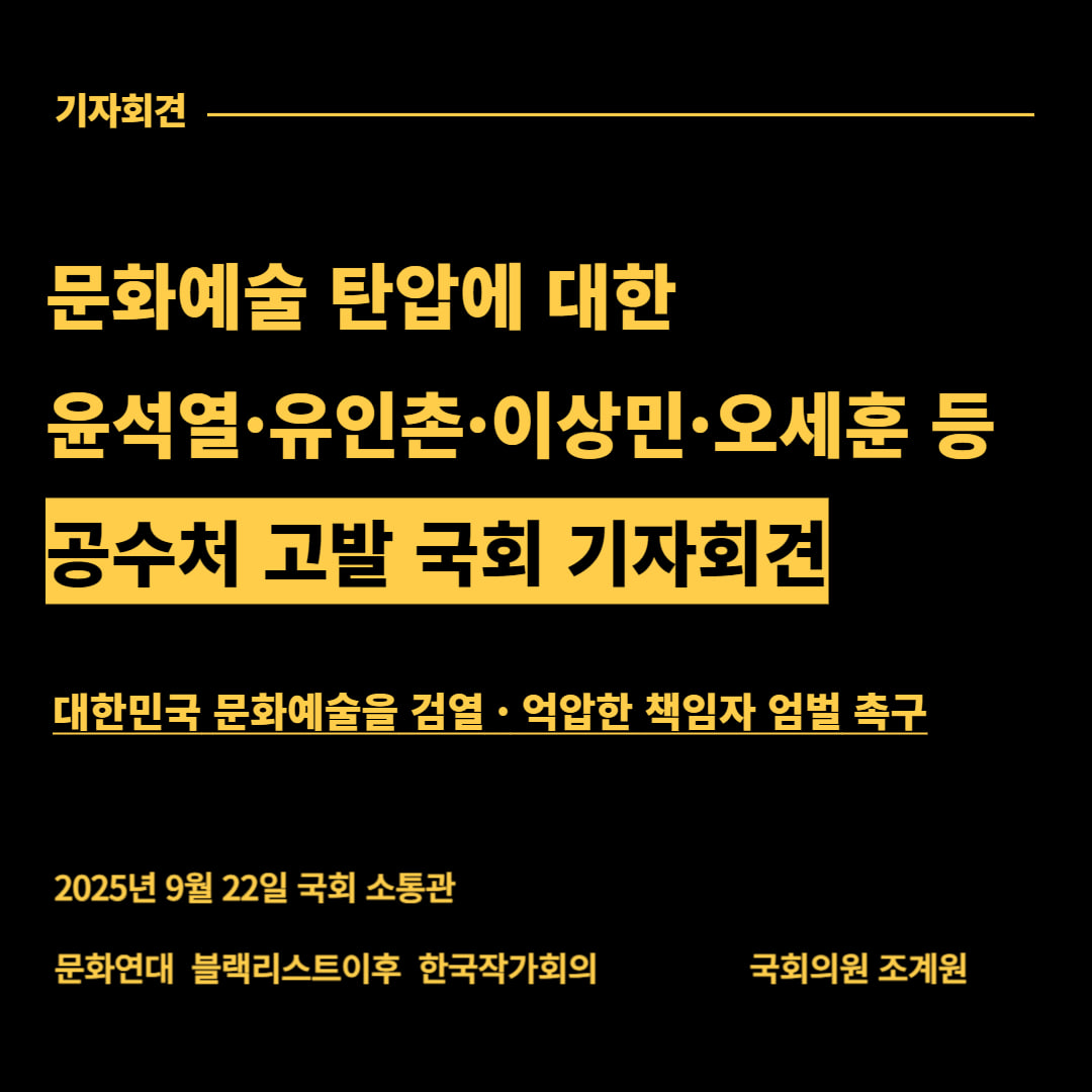 [문화예술 탄압에 대한 윤석열‧유인촌‧이상민‧오세훈 등 공수처 고발 국회 기자회견]