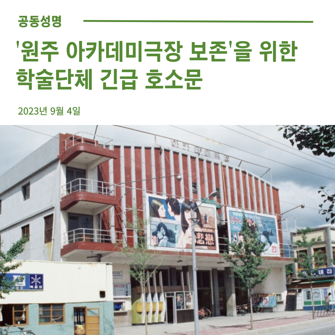 아카데미극장을 일방적으로 철거하려는 원주시 정책에 우려를 보내며